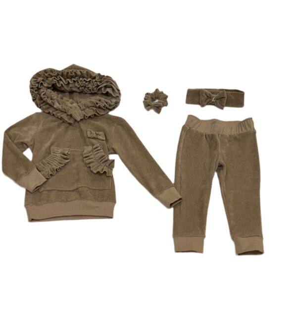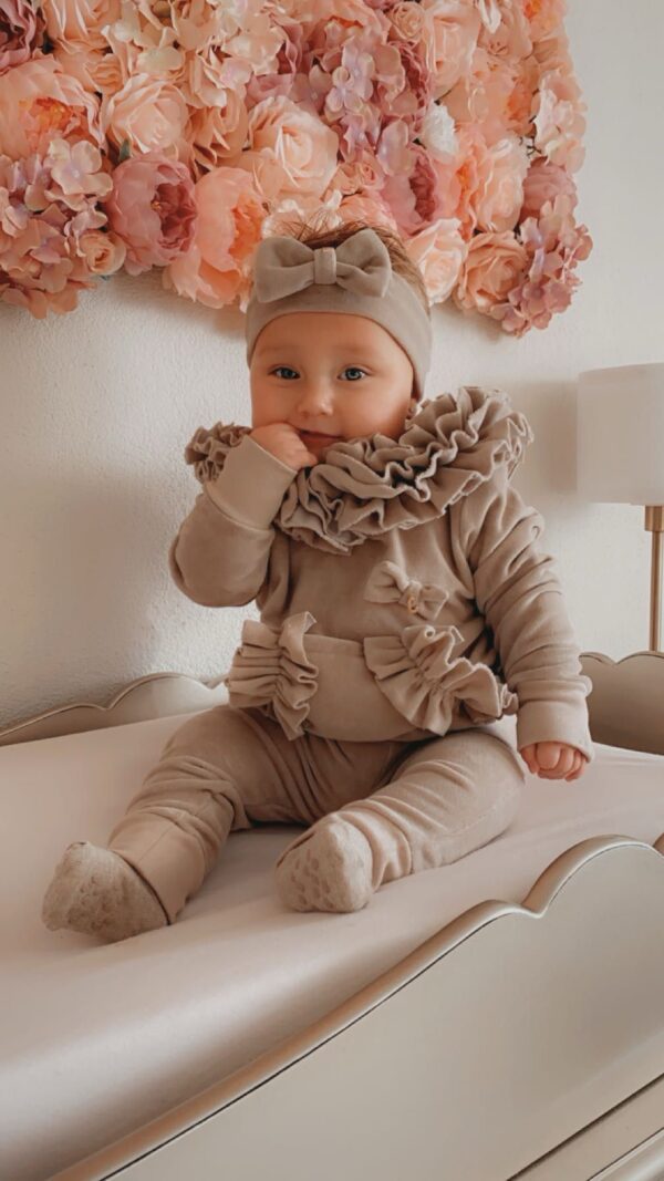 La-Unique summer grey jogging set bestaat uit trui en broek . De set is afgewerkt met strik . Accecoires zijn appart verkrijgbaar bij La-Unique.